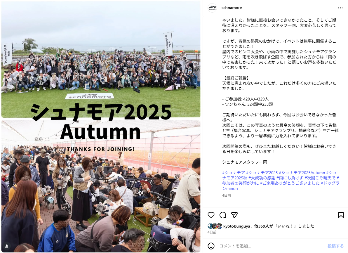 ふと思いましたが数が合わないのでシュナを飼っていない方も参加してそうなので私もぜひ参加してみたいなと思いました。